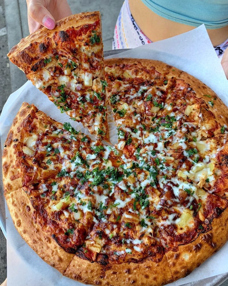 Balanced, Fusion, the Sweet and Savoriness of Caramelized flavor BiG AL'S special-blend BBQ pizza sauce, mozzarella cheese, shredded chicken breast, red onion and pineapple, topped with fresh cilantro & buttermilk ranch drizzle.