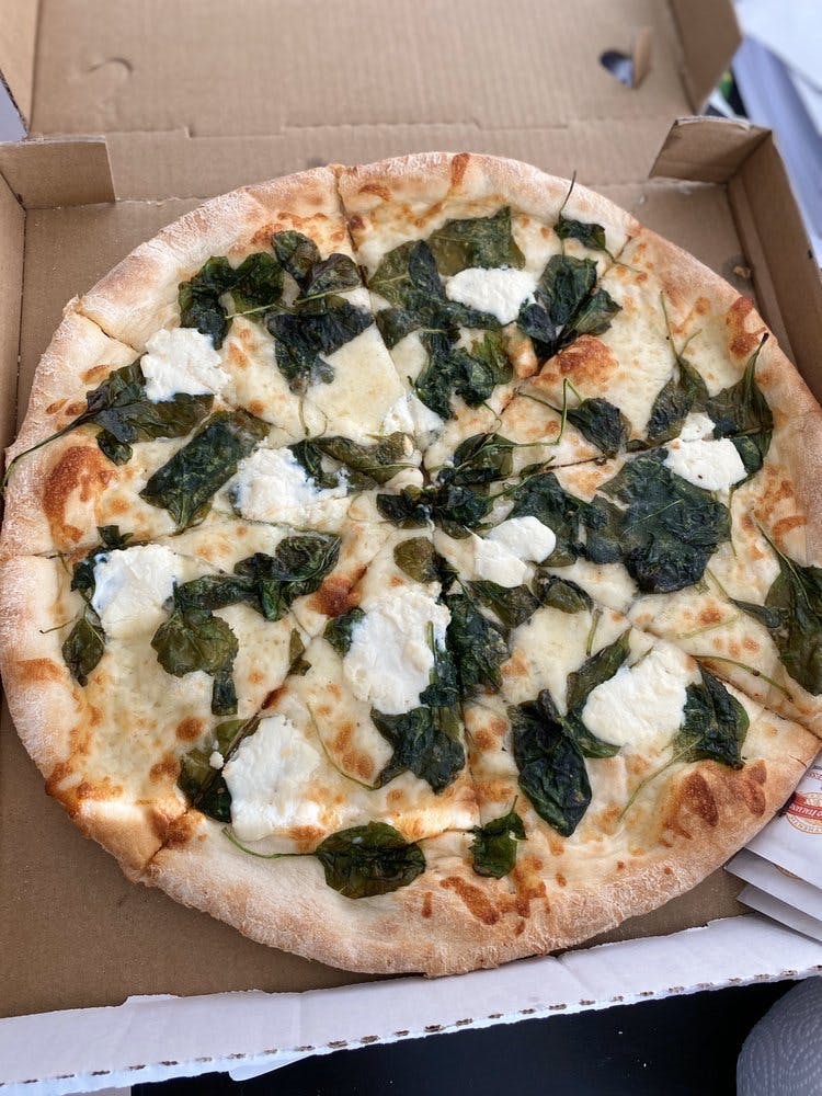 No sauce. Spinach, garlic, ricotta & mozzarella cheese.