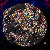 A rich, intergalactic blackout of flavor. This dark-side cookie fuses black cocoa, dark chocolate, milk chocolate, and semi-sweet chips into one celestial mass—then hides a molten Lindt Lindor milk chocolate truffle at its core. Finished with a galaxy of rainbow sprinkles for that perfect Big Bang crunch. ✨ Like a cosmic brownie… if it grew up, bought a leather jacket, and got lost in space.