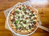 Pepperoni, fresh mushrooms, onions, peppers, sausage & hamburg.
