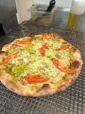 Fresh mozzarella, prosciutto, chicken, eggplant, fresh basil.