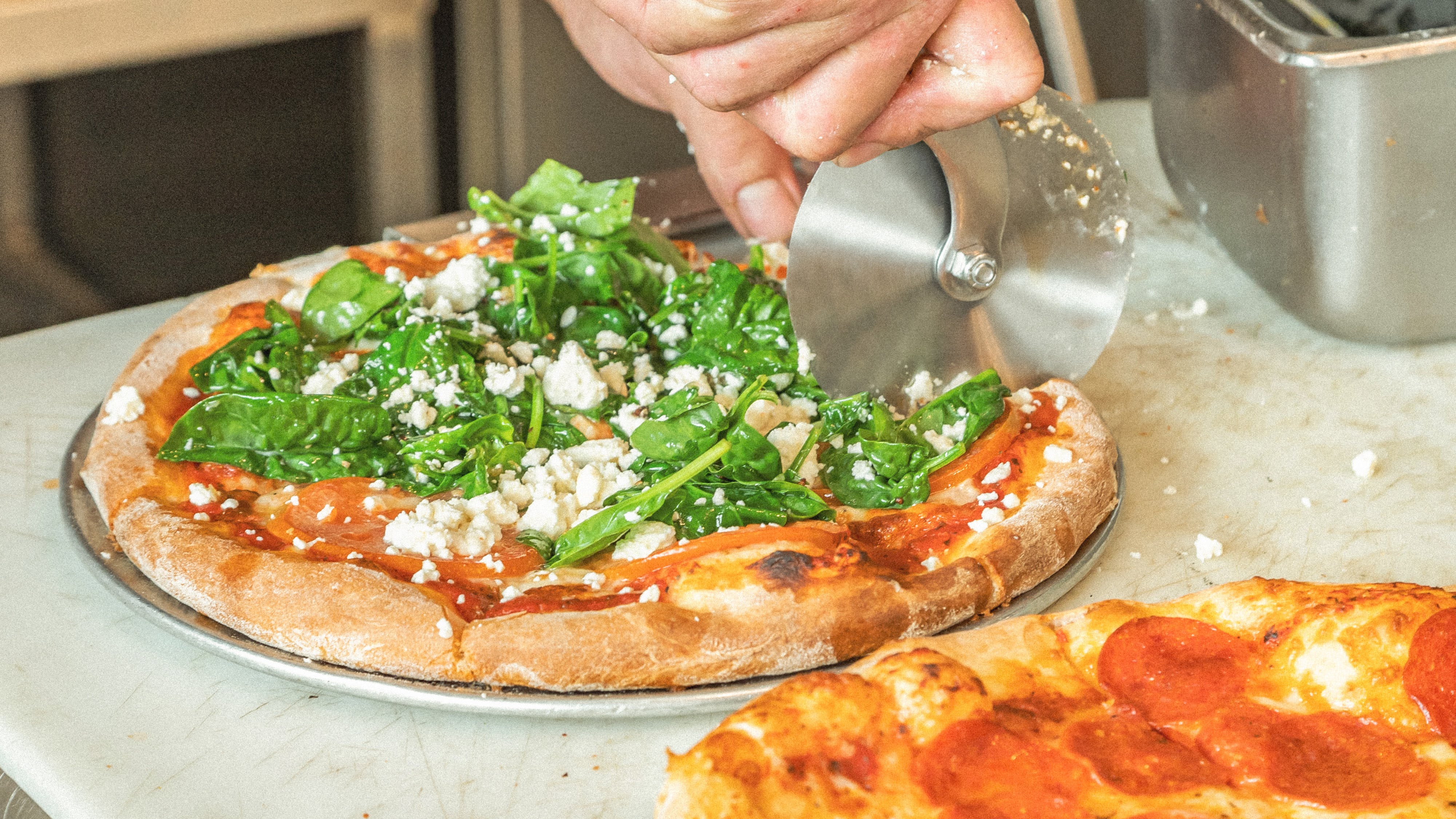 Fresh mozzarella, pepperoni, jalapenos, fresh, garlic, dry herbs, hot honey.