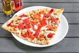 Virgin oil, herbs, roasted red peppers, onions, bacon, Cajun grilled chicken, mozzarella cheese