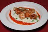 Shrimp and crushed red pepper sauteed in a lemon and white wine sauce served over linguine.