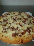 House special. Tomato sauce, mozzarella cheese, hamburger, bacon, pepperoni, sausage, onions, peppers, and mushrooms.