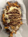 Hand cut fries topped with Coney sauce, BBQ sauce, pepper jack cheese and bacon.