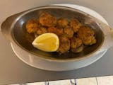 8 pieces of Sea scallops fried and served with French fries and coleslaw.