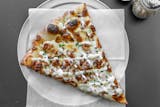 Italian pizza sauce, 60 day aged mozzarella, chopped garlic, sliced meatball, ricotta, natural cased pepperoni, Sicilian oregano ante peppers, shaved caciocavallo.