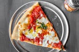 Thin crust square with fresh mozzarella, plum tomato, broccoli rabe & crumbled sausage.