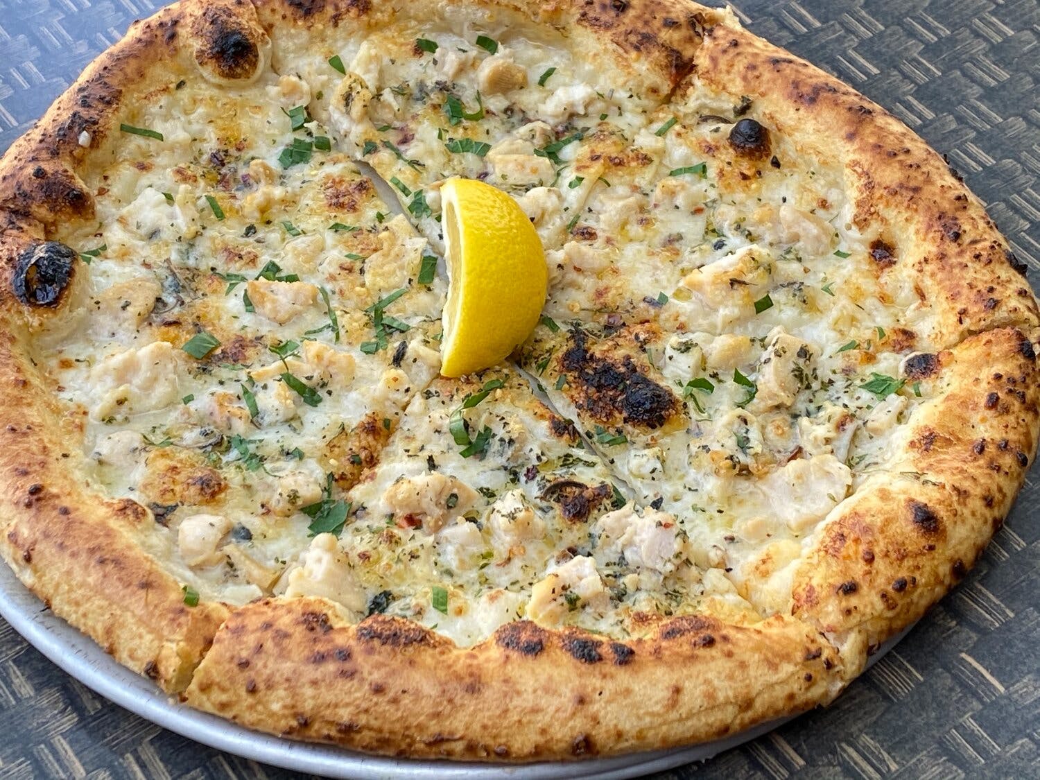 Black truffle cream, wild mushrooms, fontina, parm, thyme.