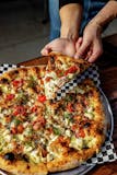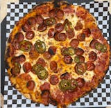 Red sauce, mozzarella, pepperoni, pickled jalapenos, and hot honey.