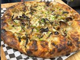 Seacoast mushrooms, caramelized onions, ricotta, mozzarella, parmesan, chives, and black pepper.