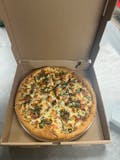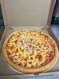 Ketchup and mustard base, American cheese, diced tomato, Bermuda onions, hamburger, crispy bacon, mozzarella.