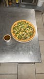 Our Birria Pizza comes with our Birria meat and and its Consume with Cilantro and Onions and comes with its Consume on the side to dip.