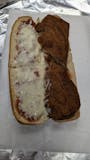 Chicken hero with marinara sauce and parmesan cheese.