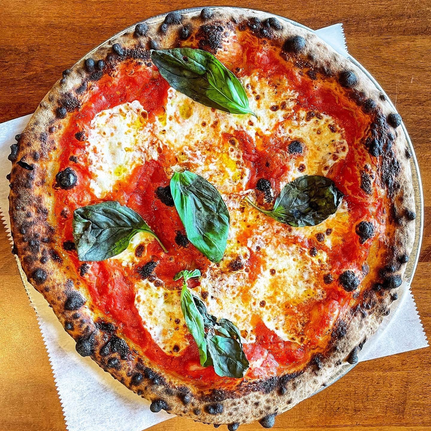 San Marzano tomatoes, “for di latte” mozzarella, fresh basil, and parmesan.