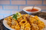 Lightly breaded eggplant layered with fresh mozzarella and vine ripe tomatoes, topped with E.V.O.O., balsamic glaze and Arugula