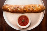 Baked with marinara sauce, topped with shredded lettuce, tomato, kalamata olives, pepperoncini, red onions, cucumbers mixed with vinaigrette dressing and served with gorgonzola cheese on the side.