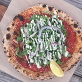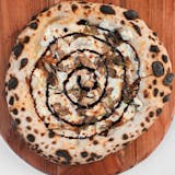 Oyster mushroom, rosemary, caramelized onion, lemon ricotta, mozzarella & parmesan cooked in our wood fired oven.
