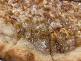 Mouthwatering and home-made sweet apple topping on our fresh hand tossed pizza pie (~10", serves 4+), topped with Mozzarella cheese. (Contains Cinnamon)