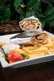Grilled thin layer of chicken mixed with tomato, parsley, and garlic sauce wrapped with a flour tortilla.