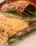 Stracchino cheese, prosciutto, cotto (Italian ham), tomatoes, spring mix, and olive oil.