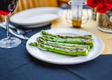 Filet, simply grilled served with mashed potatoes and grilled jumbo asparagus, demi glace.