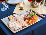 Breaded then fried chicken breast, san marzano sauce, parmesan, fresh mozzarella, linguine pomodoro.