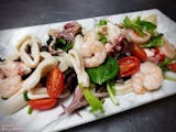 Fresh lettuce salad, octopus, calamari, shrimps, mussels, and clams seasoned with olio extravergine di oliva, lemon juice, salt & black pepper.