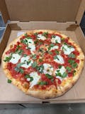 Homemade sauce, fresh mozzarella, fresh basil, sea salt, olive oil.