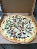 Philly steak, green peppers, mushrooms & onions (no sauce).