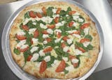 Fresh mozzarella, plum tomato, basil, fresh spinach, olive oil, balsamic glaze, & sea salt.