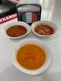 Pesto sauce, gorgonzola cheese, sun-dried tomatoes.