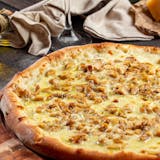 Extra thin and crunchy crust, alfredo sauce, mozzarella , blue cheese, caramelized onions, arugula and truffled olive oil.