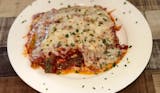 Breaded eggplant topped with mozzarella cheese & tomato sauce served with pasta. Supersized for your party.