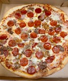 Cheese, pepperoni, sausage & peppers with a touch of sauce.