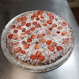 Pizza dough, nutella, strawberries & confectioners sugar.