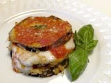 2 rings of breaded eggplant with fresh mozzarella, basil and marinara sauce.