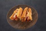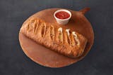 A classic snack, our garlic knots are strips of pizza dough tied in a knot, baked, and then topped with melted butter, garlic, and parsley.