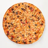 Genoa salami,ham,fresh pulled mozzarella,fire-roasted red peppers,grape tomatoes,red onion,crispy lettuce,and kalamata olives. Our Salad Pizza is our pizza crust with sauce and your favorite salad on top.