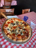 In-house-made pizza sauce, mozzarella cheese, pepperoni, sausage, mushrooms, onions, green peppers, and black olives.