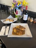 Breaded sliced eggplant, topped with homemade marinara sauce, mozzarella cheese, then baked. Served with a side of pasta.