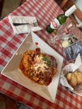 Thin pasta sheets layered with ricotta cheese, mozzarella cheese and homemade meat sauce, then baked.