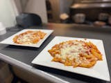 Penne pasta, seasoned ricotta cheese, tossed with tomato sauce, mozzarella cheese, then baked.