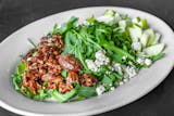 Peppery arugula, a crispy apple toasted pecan & raspberry vinaigrette, gorgonzola cheese