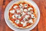 Mozzarella cheese, pepperoni, spinach, ricotta cheese, parmesan cheese, fresh garlic & fresh sliced tomatoes.