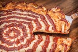 Fresh tomato sauce, mozzarella, bacon, oregano.