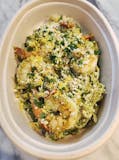 Pesto, lemon butter, white shrimp, Calabrian chili, and gremolata.