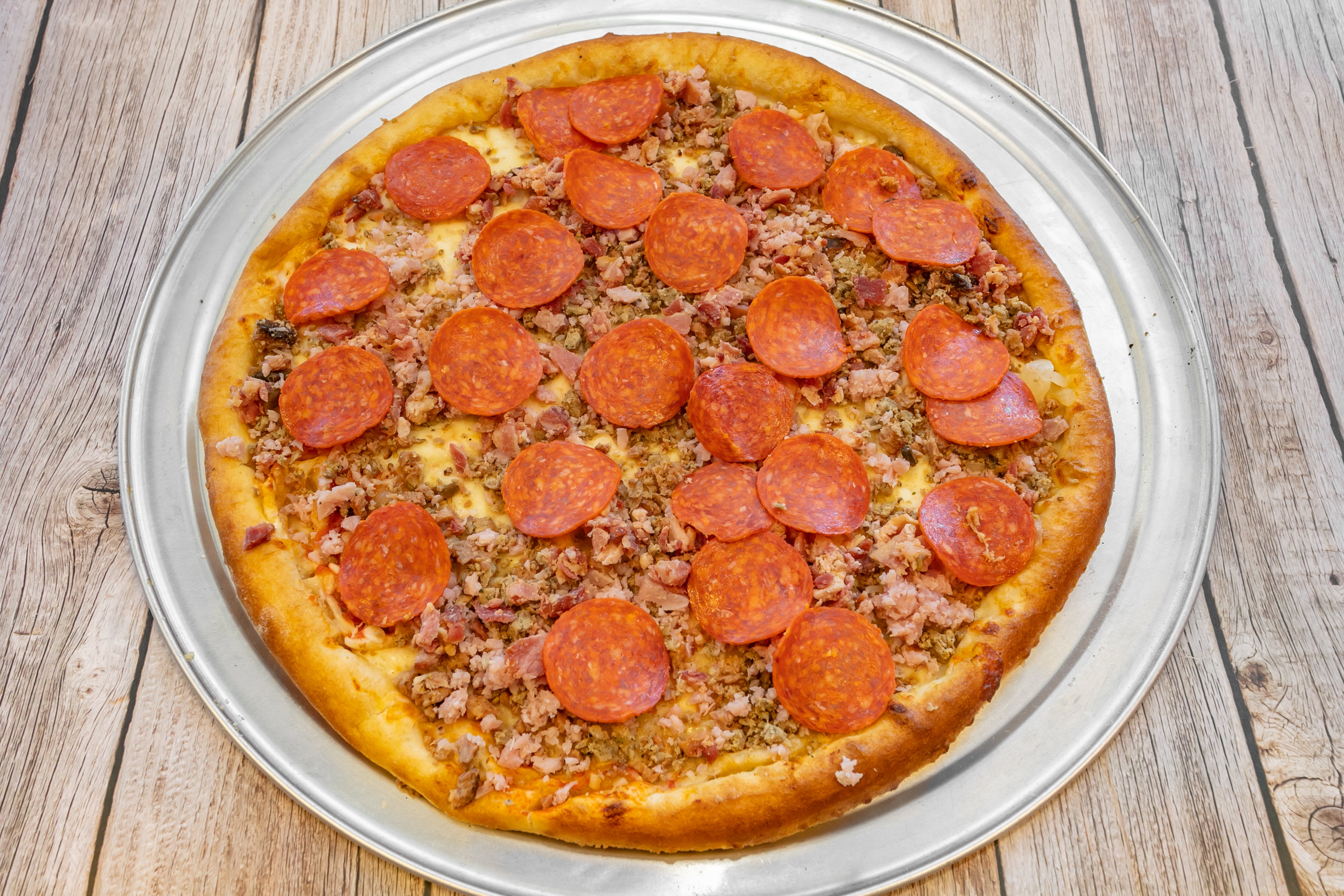 Pepperoni, sausage, meatballs, bacon and ham.