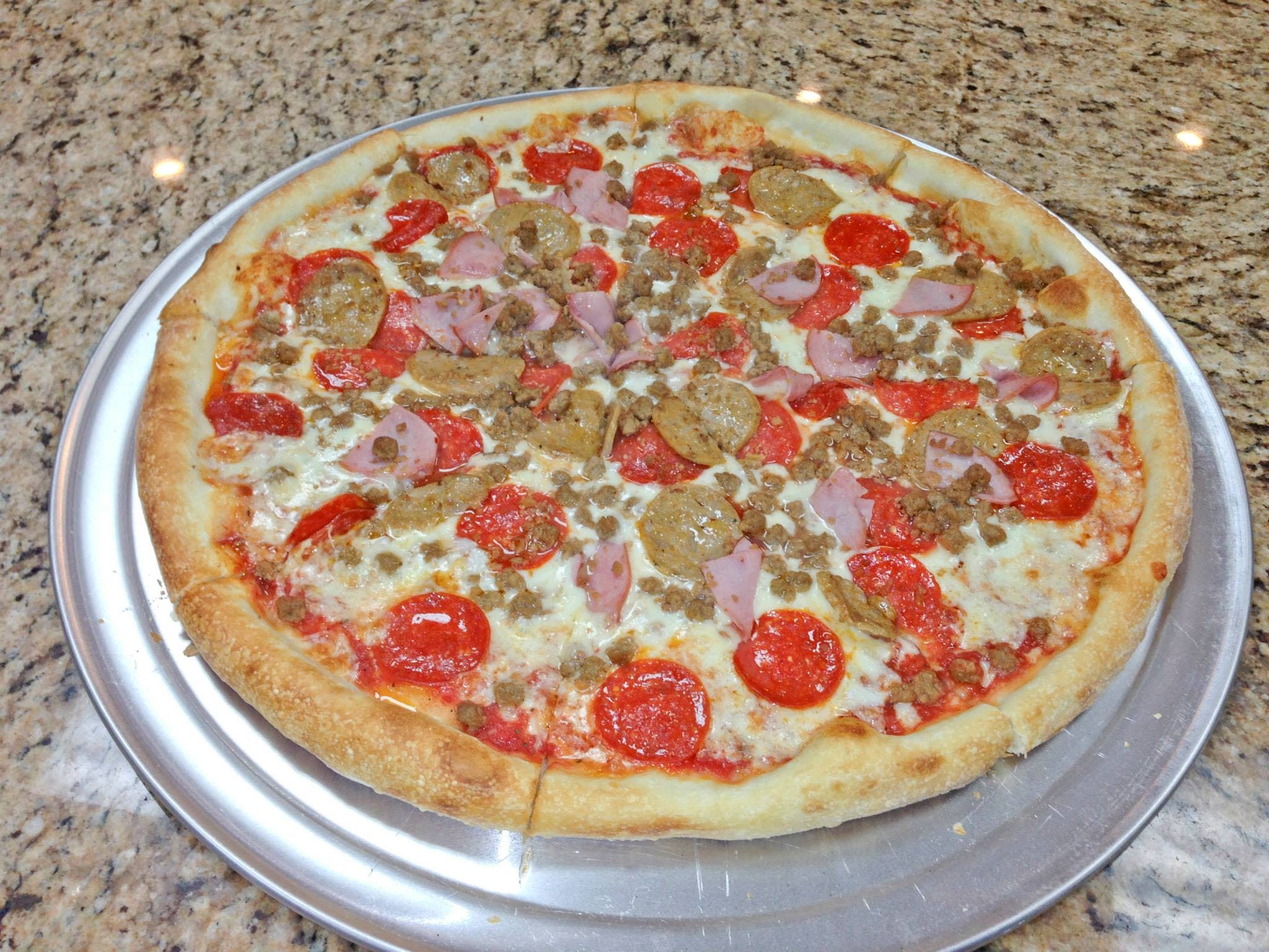 Pepperoni, sausage, ground beef & ham.